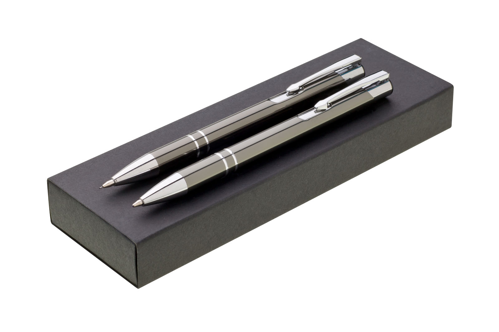 Sada ORIN šedá, tužky jsou vyrobeny z hliníku, na těle mají 2 stříbrné proužky a doplňky. Dodávají se v papírové krabičce.