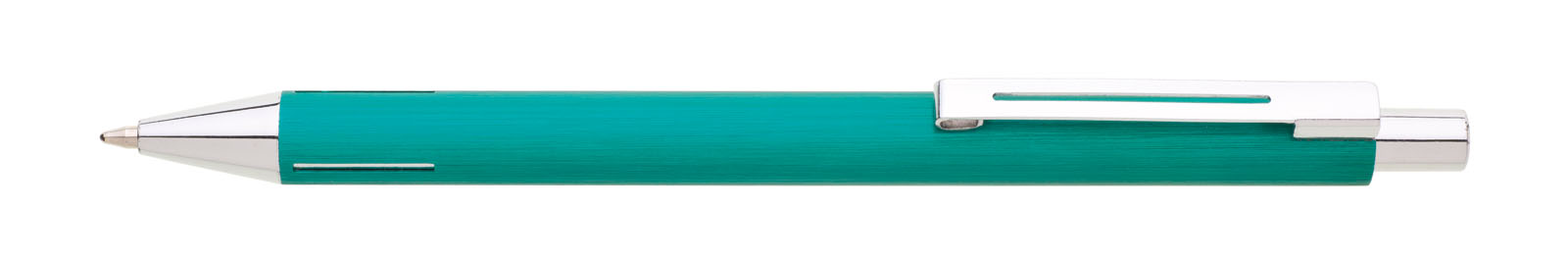 Elegantní hliníková propiska s jemně rýhovaným, zeleným povrchem a stříbrnými doplňky.